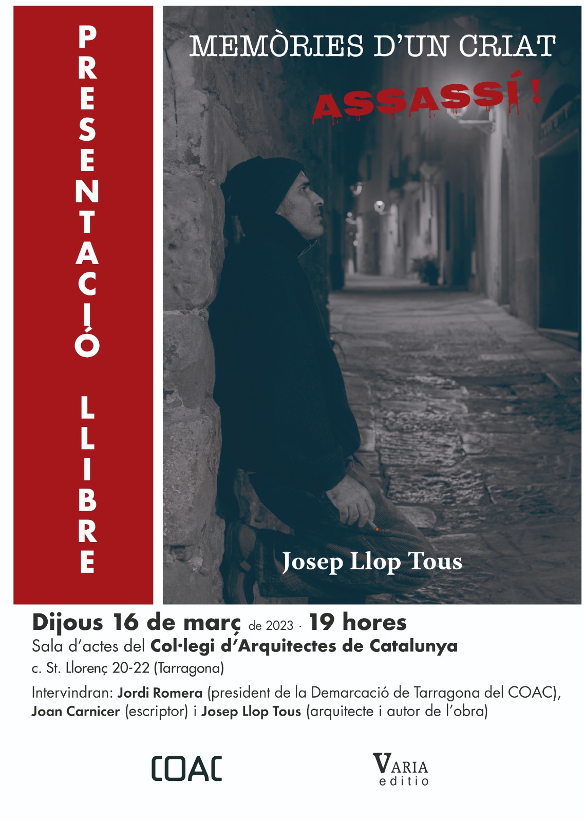 El 16 de març de 2023, a les 19 h, a la sala d'actes del COAC Tarragona, Josep Llop presenta el llibre "Memòries d'un criat assassí!", amb Joan Carnicer i Jordi Romera.