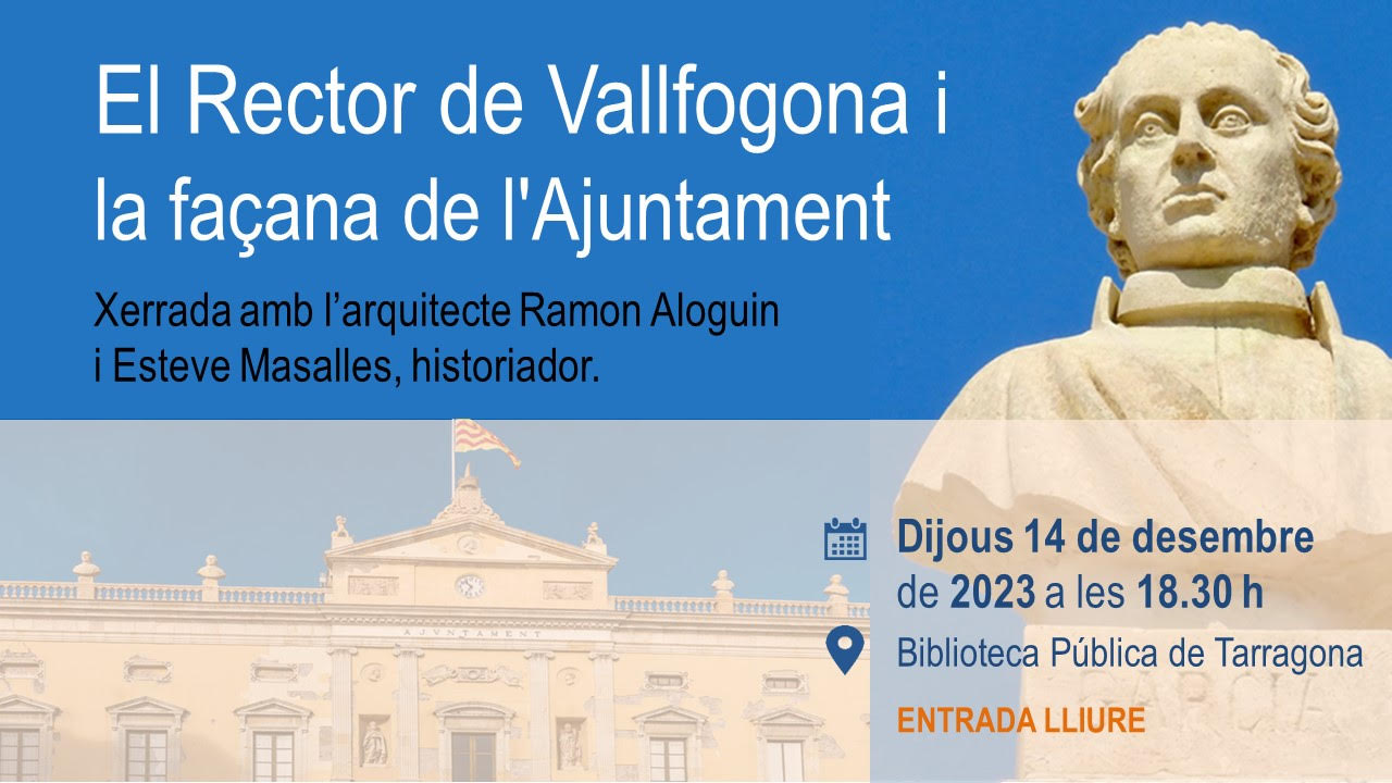 Xerrada amb l'arquitecte Ramon Aloguin i Esteve Masalles sobre el rector de Vallfogona i la façana de l'Ajuntament, el 14 de desembre de 2023 a les 18:30 h a la Biblioteca Pública de Tarragona.